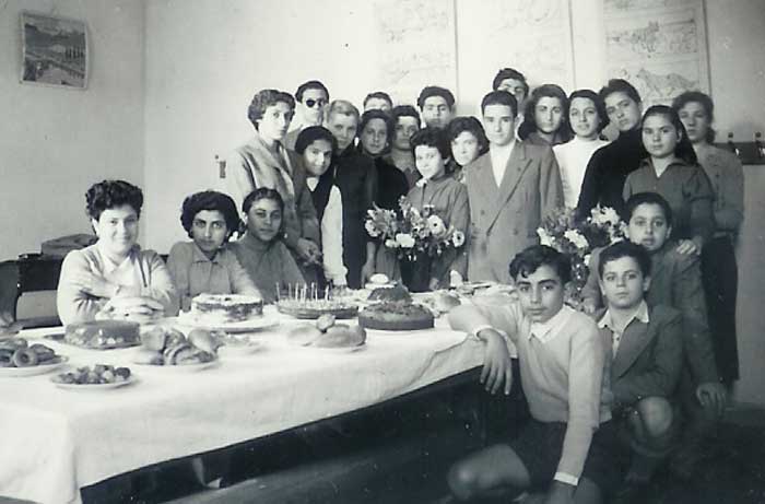 Figurent sur cette photo : Tina Hafez, Tony Setton, Mireille Braha, Lisette Feinberg, Nadia Kamel, Roger Eskinazi, Emile de Medina, Tova ?, Léo Goldman, Marcel Papouchado, Ida Chéhovah, Vicky Masri, Rosette Broudo, Armand Levy, Rosette (Rosy) Abadie, Line Matalon, ?????